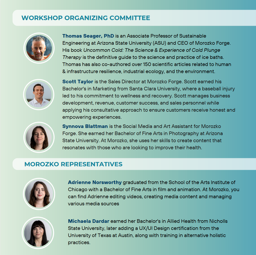 Our aim in gathering this elite group of experts is to connect cold plunge leaders in wellness businesses, sports, first responders and science/medicine practices to share research findings, case studies, and protocols, and to guide continuing research on the use of cold plunge therapy (...) - Prof. Thomas Seager